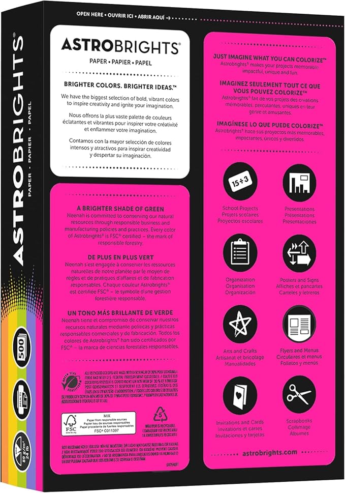 Neenah Astrobrights(R) Bright Color Paper, 8 1/2in. x 11in., 24 Lb, Assorted Colors, Ream Of 500 Sheets, 21289