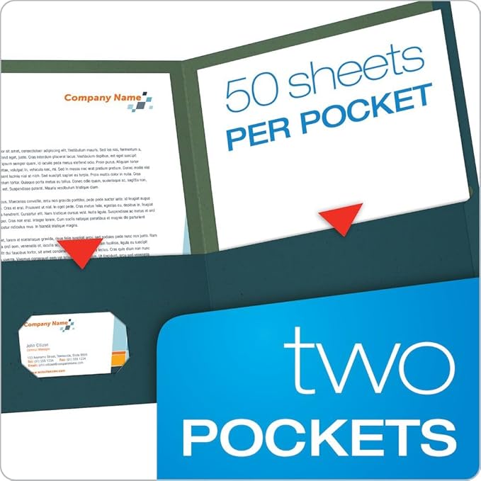 - Twin pocket folders store up to 100 sheets of paper (50 per pocket)