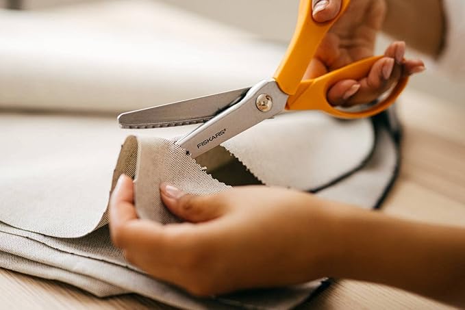 - Pinking scissors (length: 23 cm) for fabrics and paper, for precise cutting without fraying, Suitable for right-handed users