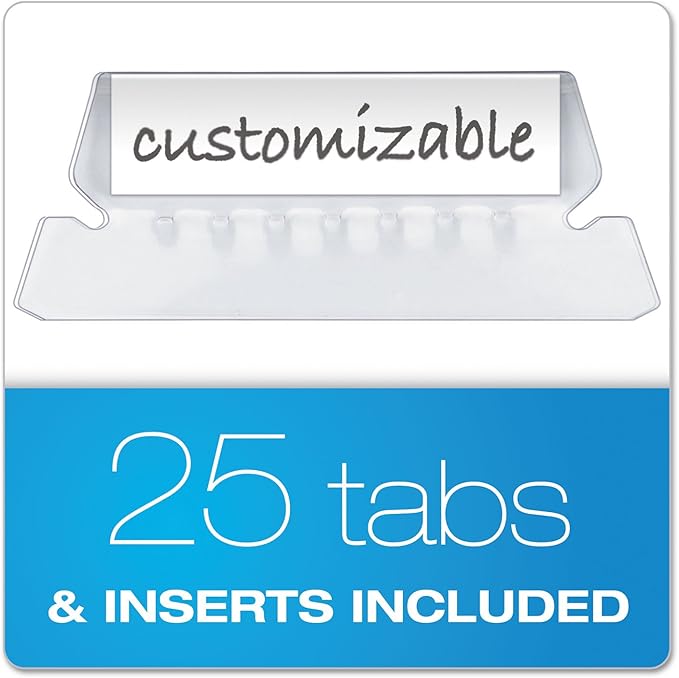 - Includes printable label sheet and 25 clear 1/5-cut tabs