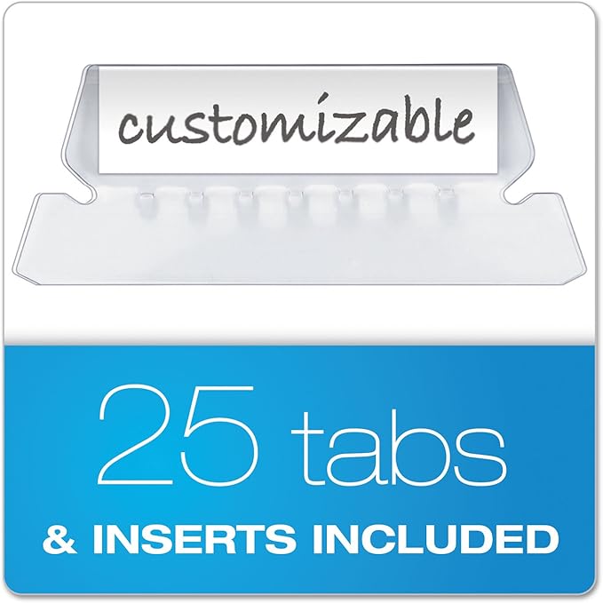 - Includes printable label sheet and 25 clear 1/5-cut tabs
