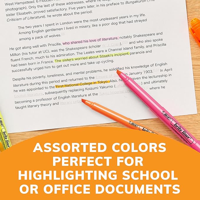 - One 12-count pack of BIC Brite Liner Pink Highlighters