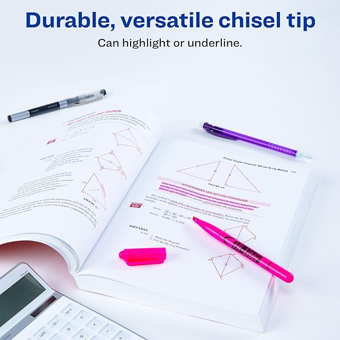 - Durable, chisel-tip highlighters won't fray and can be used to highlight or underline