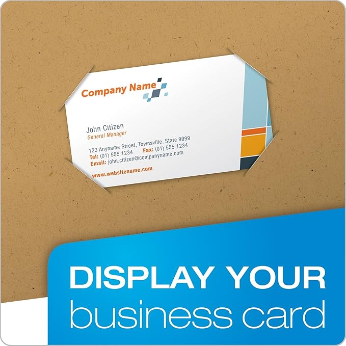 - BUSINESS CARD DISPLAY: Inside pocket provides a die-cut business card holder