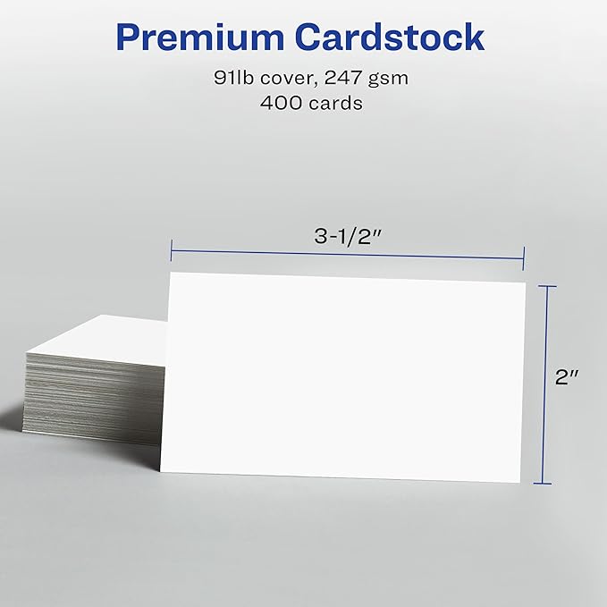 Avery Clean Edge Printable Business Cards with Sure Feed Technology, 2" x 3.5", White, 400 Blank Cards for Laser Printers (5877)