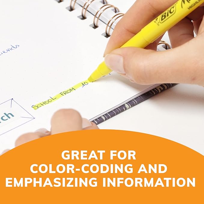 - One 12-count pack of BIC Brite Liner Yellow Highlighters