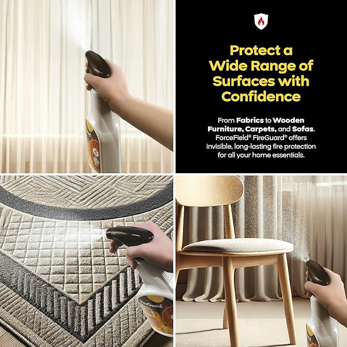 - FLAME RETARDANT -- Prevents flames from burning your favorite drapes, clothing, furniture, ect.RESISTANT TO SPREAD - In an event of a fire, the Fire Guard prevents the spread of fire and reduces smoke from developing further STAIN PROTECTION -- Designed for fabrics that have not been treated with water proofing stain protection due to being water-based MEETS NATIONAL STANDARD -- This product has been successfully tested in accordance with and meets the standards established by the National Fire Protection Association Test Method SAFE & EASY - The Fire Guard is consists of a nonhazardous formula making it environmentally friendly and is easy to apply/ clean up.