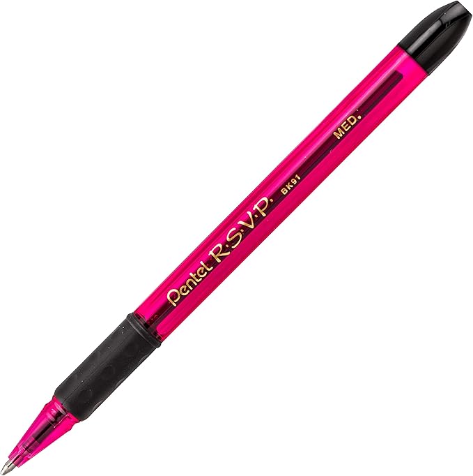 Pentel Pink BCA RSVP Razzle-Dazzle, (1.0mm) Medium Line, Black Ink, Pack of 5 (BK91RDBP5P)