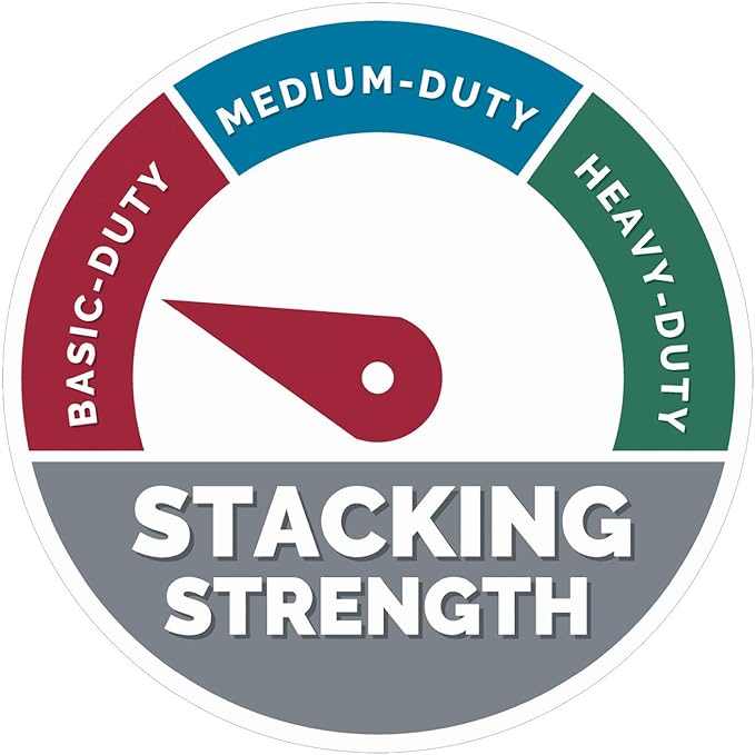 - Basic-duty, standard set-up construction for moderate stacking or use with shelving