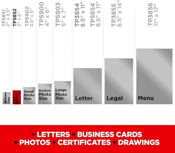 - 2.4 in x 4.2, ID Card Size 100 per package, 5 Mil thickness