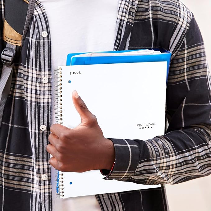 Five Star Spiral Notebook + Study App, 3 Subject, College Ruled Paper, Fights Ink Bleed, Water Resistant Cover, 8-1/2" x 11", 150 Sheets, White (72464)