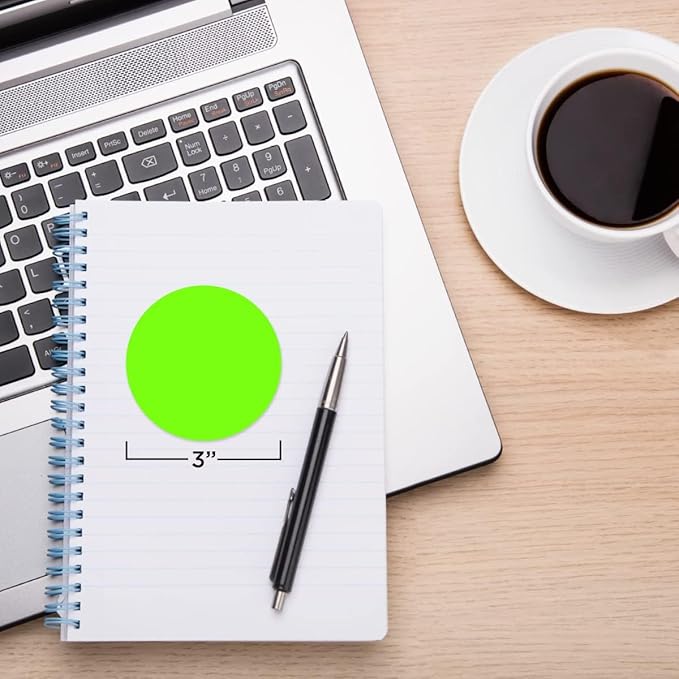 - Permanent Adhesive Green Color Circle Stickers; Experience the strength of Permanent Adhesive, securing each 3-inch colored dots stickers firmly in place on a variety of surfaces for long-lasting use.