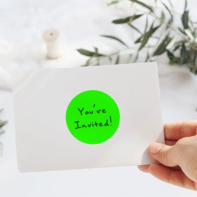 - Fluorescent Matte Finish Green Color Labels; The Fluorescent Matte Finish dot labels not only add vibrancy to your projects but also offer a smooth surface that's easy to write on.