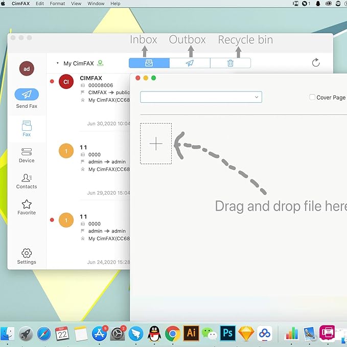 - Drag and Drop to send fax on Mac computer. Pop-up notification for incoming fax.