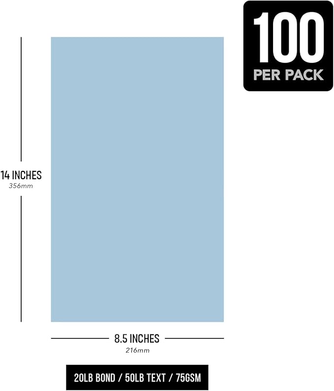 Blue Pastel Colored Menu Paper - 8.5" x 14" (Legal Size) - For Documents, Announcements, Menus Arts and Crafts | Bulk Pack of 100 Sheets