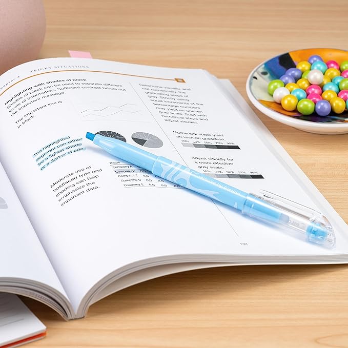 - Stress-Free Highlighting: Highlight, erase & highlight again without damaging your homework, textbooks, notes or documents; Unique thermo-sensitive ink disappears completely with erasing friction