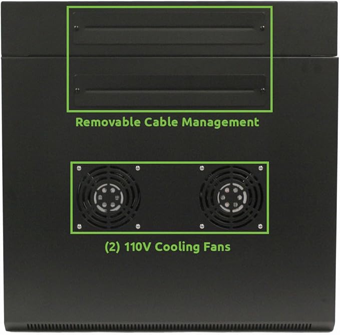 - ENHANCED VENTILATION & SECURITY - Two built-in fans and efficient ventilation work together to prevent overheating, maintaining the optimal functioning of your equipment. The strengthened, lockable tempered glass front door enhances security while allowing easy monitoring of installed equipment.