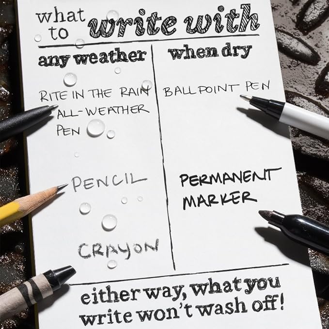 - WHAT TO WRITE WITH: Use a Pencil or All-Weather Pen and your notes will stay intact. Standard Ballpoint pens will work when paper is dry. Water-based inks will bead off Rite in the Rain sheets.