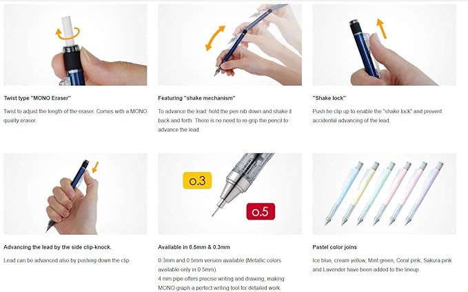 - Shaker Mechanical Pencil with mono eraser, monograph from Japanese stationary Brand Tombow
