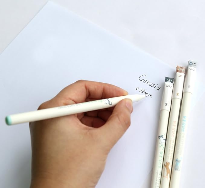 - One set total 6pcs kawaii cute Cat pens, 3 different cute cats colors with the cat design cap topper and pens body.