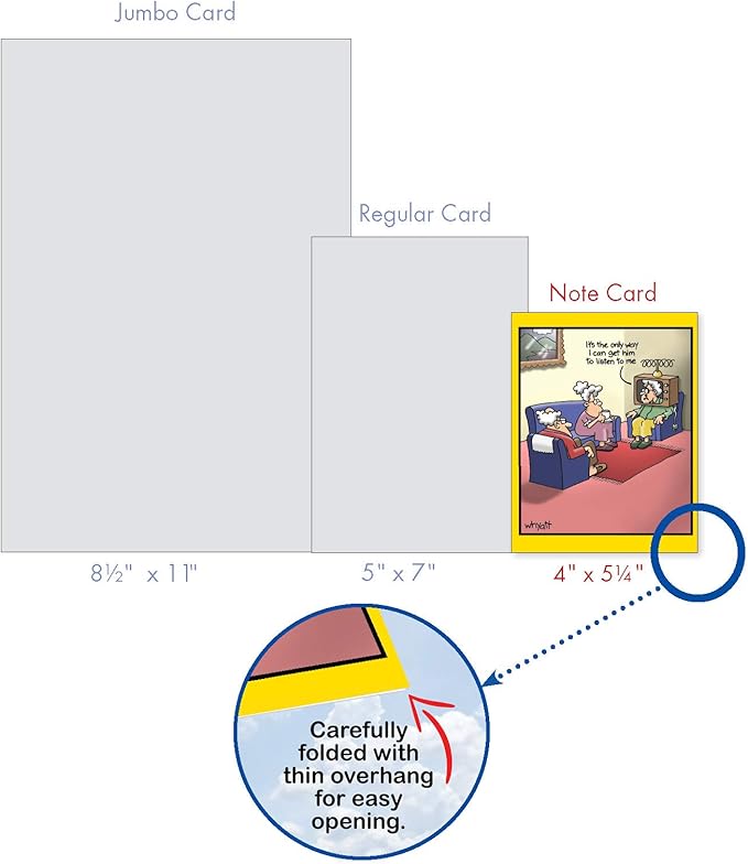 - INSIDE GREETING: The inside is ungreeted, making this perfect for your customized thinking of you, miss you, just because notes, for any time and for all occasions! COVER - Featuring an Assortment of Favorite and Funny Tim Whyatt Cartoons