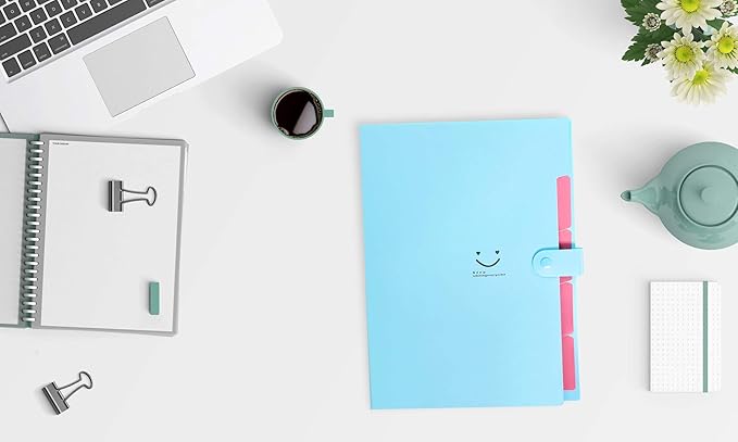 SKYDUE Expanding File Folder 5 Pockets ,Letter A4 Paper Accordion Document Organizer (Blue)