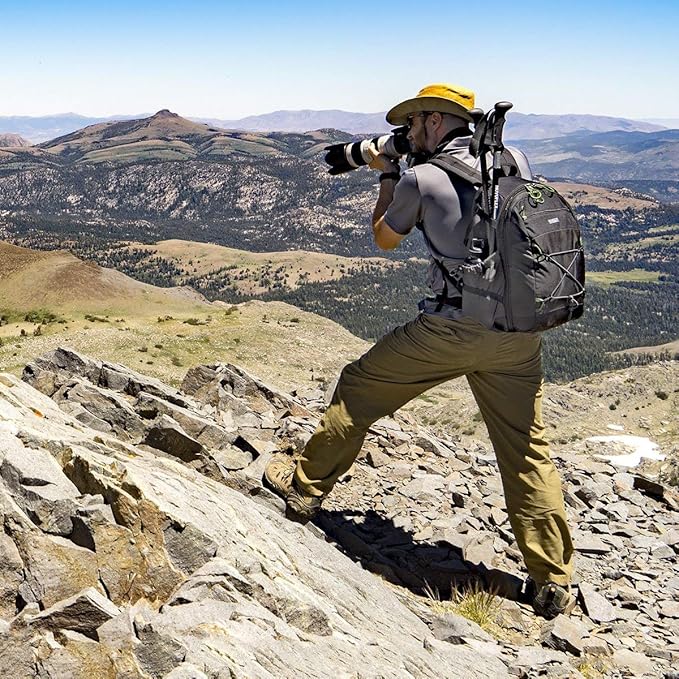 - Fits a complete camera system including a 70-200mm f/2.8 attached with hood in the shooting position