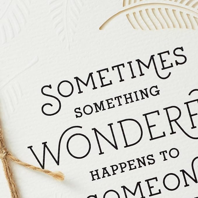 - Cover features an embossed fern leaf pattern accented with natural twine. Inside reads: "...like you! Congratulations."