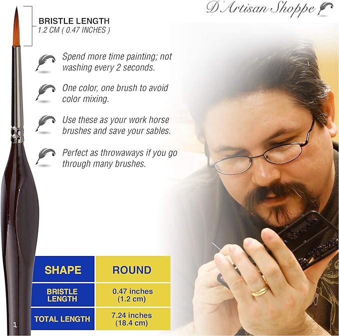 Fine Tip Detail Paint Brushes. Miniature Brushes for Detailing Art for Acrylic Watercolor Oil - Models, Airplane Kits, Craft, Rock Painting Artist Supplies. Size 1 Round Tiny Paintbrush
