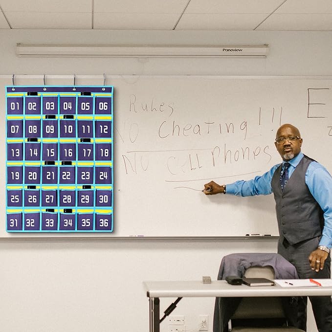 - 【Cell Phone Pocket Chart for Classroom】Used as classroom phone storage and calculator storage. Perfectly to hold students cell phone, calculators in class. Let students focus more on learning, say goodbye to students playing with their phones in class and create an efficient classroom.
