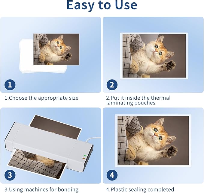 - Easy to Use: Compatible with all laminator brands. Place the photo in the center of the pouch, put it into the laminating machine.