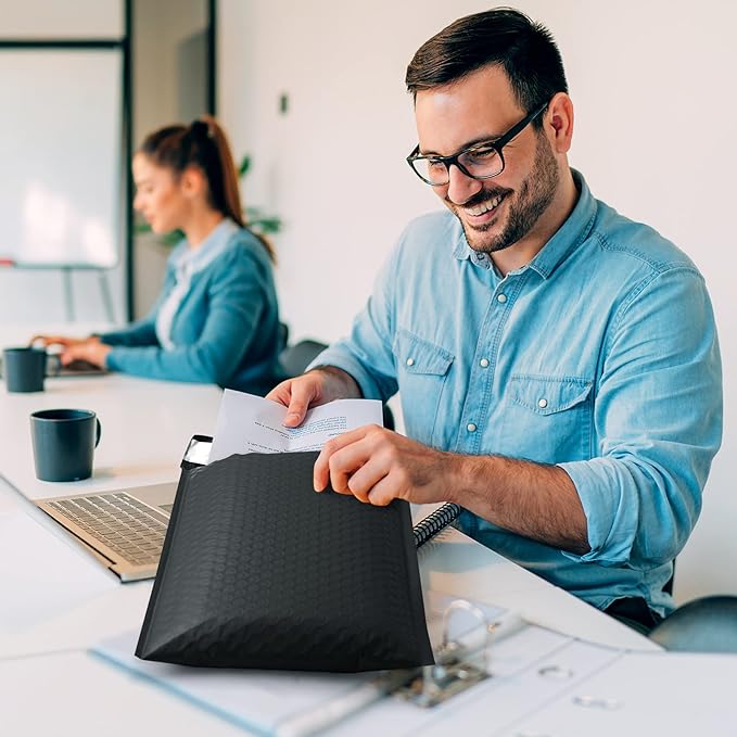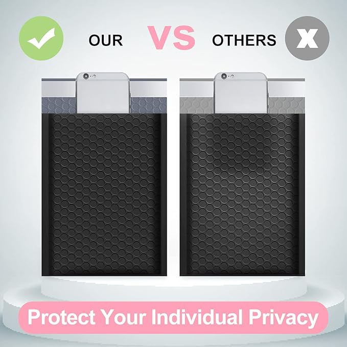- Opaque Poly Bubble Mailers: The black bubble mailers outer size is 8.5x12 inch, while the inner size is 8.5x11 inch. With full air bubbles, our bubble mailers can protect your value products from damage caused by external impacts. The inner lining is using gray film, even if there is strong light, the items in the bag cannot be seen, which can protect your privacy well