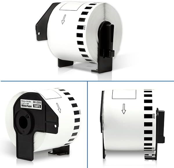 - Our replacement for brother labels dk-2205 can maintain excellent performance, clear printing, strong adhesive, jam-free, easy to peel off, thermal printing technology helps you to save the expensive ink or toner cartridges. It can keep for long time without any fading