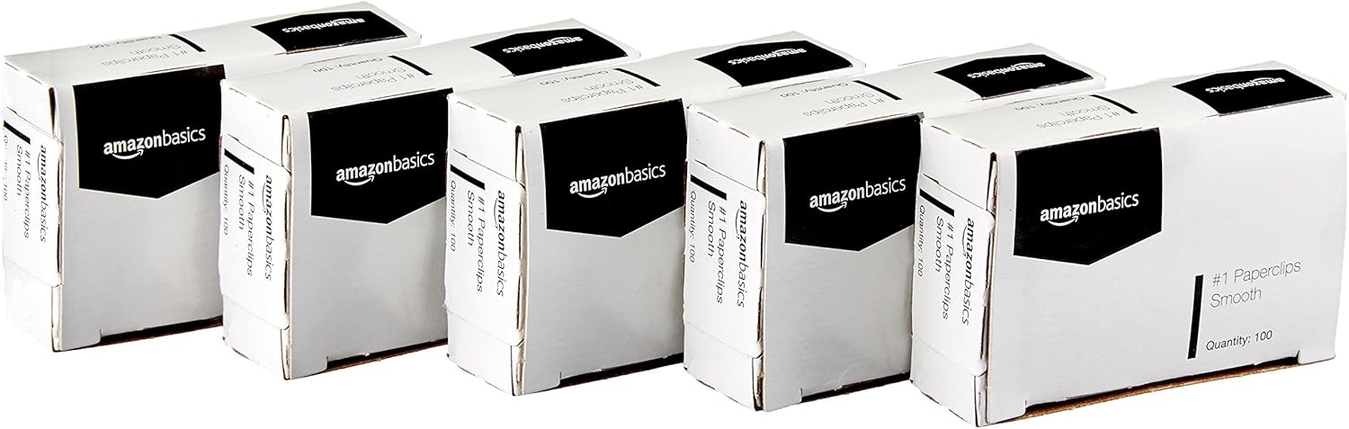 Amazon Basics No. 1 Paper Clips, Smooth, 1000 Count (10 Pack of 100), Silver