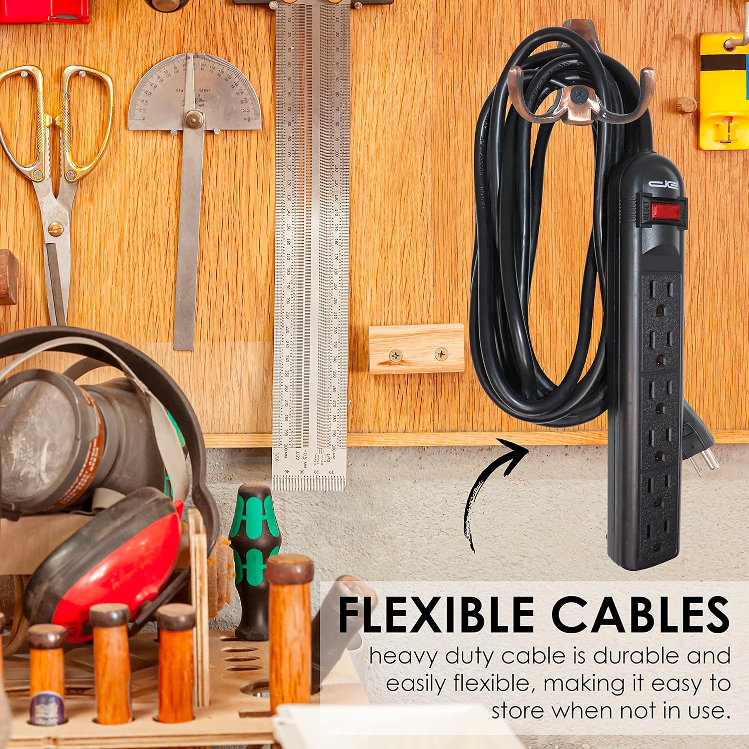 Digital Energy 6-Outlet Surge Protector Power Strip with 15-Ft Long Extension Cord, Black, ETL Listed/UL Standard