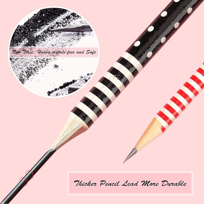 - - High Quality - These cute pencils are made with natural wood barrels, give you a ideal introduction of writing and drawing. Rounded shape girl pencils with a colorful stripe satin-smooth finish for a secure grip and enhanced writing comfort.