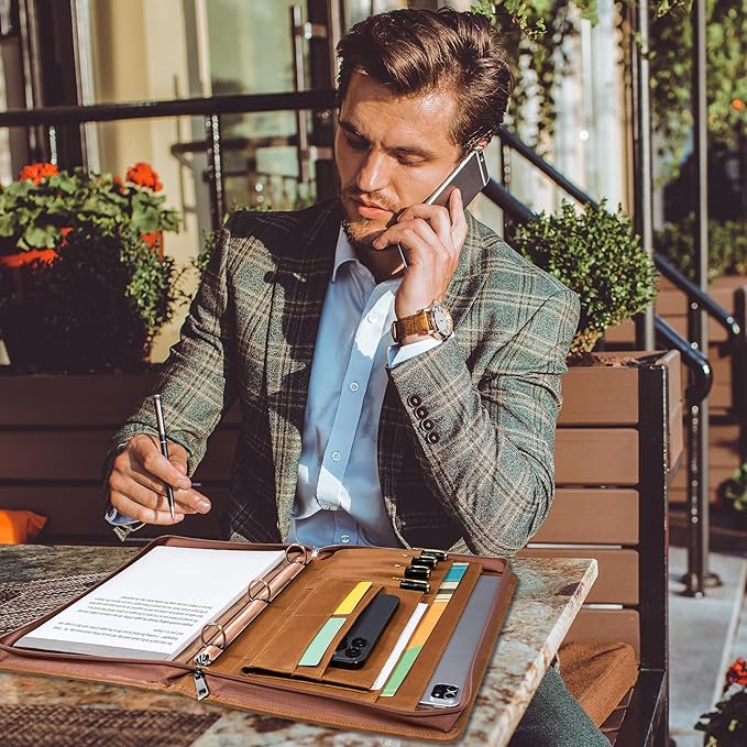 - 【Beautiful Gift】 Stylish and stunning to the touch , excellent gift for the holidays, The leather binder looks gorgeous when walking into a board meeting, travel, conference, office or interview, while sliding neatly into handbags, backpacks, while maintaining a larger storage space than traditional leather plans. This is the perfect binder for men and women, students, lawyers, realtors, graduates and more.