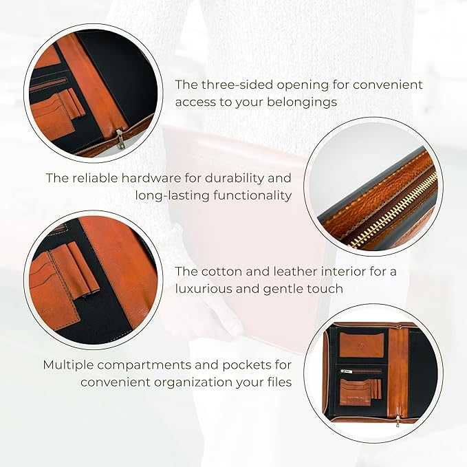 - ✔️ PORTFOLIO THAT MAKES A STATEMENT – did you know you have only 7 seconds to make a first impression? And every detail matters - this eye-catching leather organizer will help you to turn heads and catch the COMPLIMENTS, making you feel more confident and good-looking.