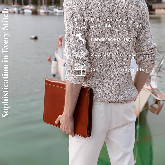 - ✔️ ONE OF A KIND – the portfolio is made from full-grain cowhide leather, which is hand-dyed using vegetable tanning method. This artisan technique maintains a natural look of leather, leaving each piece with a slightly different pattern. So there will be only one bag like yours in the world.