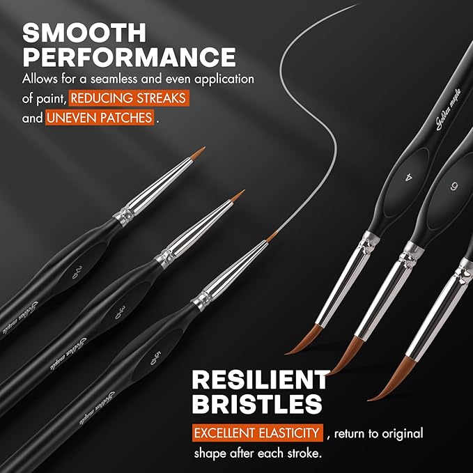 - DETAIL PAINT BRUSH SET: 10pcs miniature brushes (SIZE:5/0,3/0,2/0,0,1,2,3,4,6,8) ensure that you always have just the right paint brush for the job. This set of detailing brushes offers the perfect small paint brush for each phase of all your artistic painting projects.