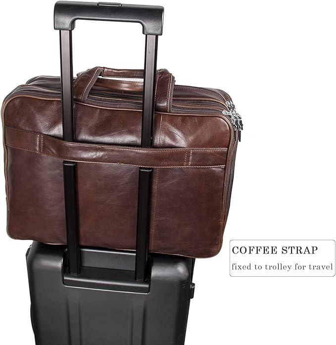 - Design: this briefcases have a luggage strap on the back, can be easily hung on trolley case or trolley of airport, be sure it's safe, won't fall off, Release your hands, Experience The Comfort of Stress Free Packing and Travelling!