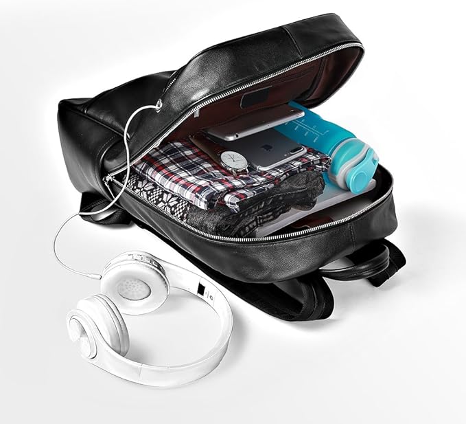 - Material: The backpack is made of cow leather. Come with silver metal color antioxygenic hardware ,with fully padded lockable laptop and tablet compartments. Airmesh back panel is fully vented and well padded in all the right places.