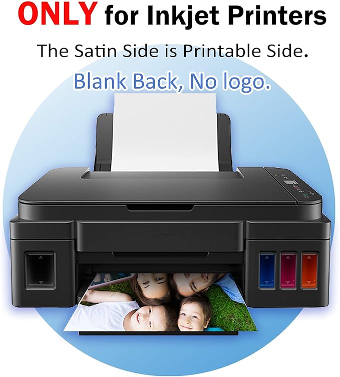 - Single-sided printable photo paper. Only the side with satin texture is the printing side. Recommend printing with 'Paper Type' set to 'Photo Paper' to get beautiful photo projects