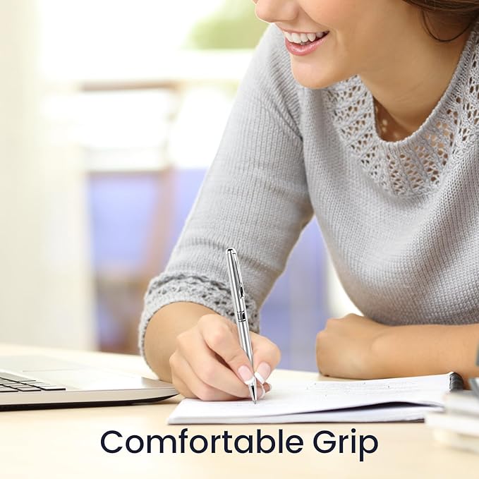 - Comfortable Medium Point Pen : Light Weight And Round Barrel Thin Pen For Writing Comfort,Silver Police Pens Ballpoint Meet All Your Needs For Signing Checks, Taking Notes, Filling Out Forms, Etc