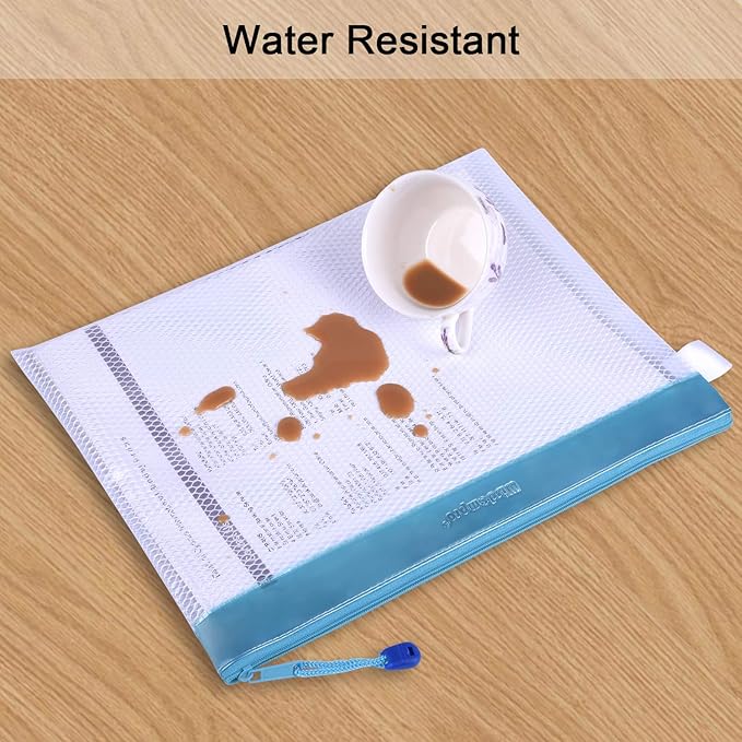 Zipper Pouch, Wisdompro 4 Packs Durable Letter Size Waterproof Mesh File Bag, Document Organizer - Pink/Blue