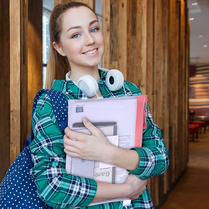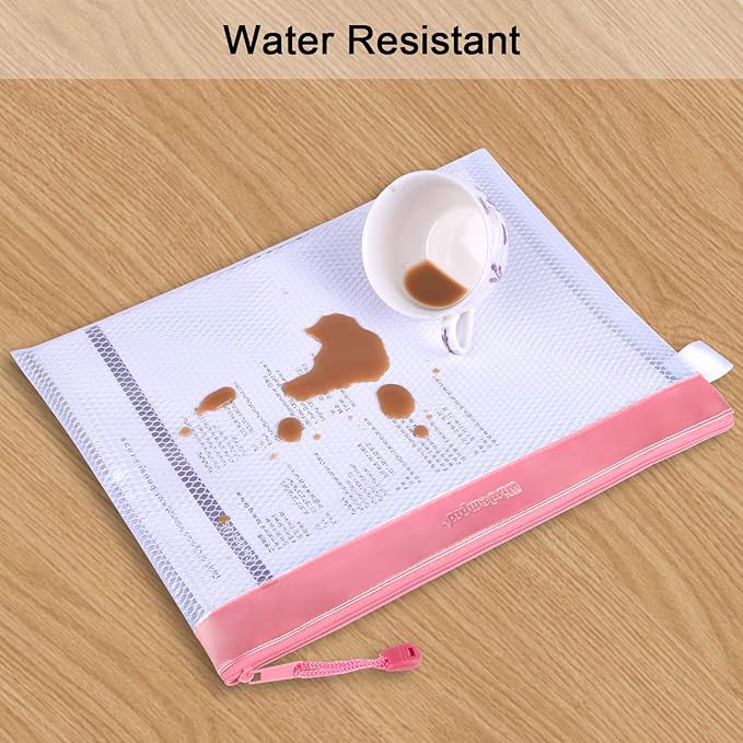 Zipper Pouch, Wisdompro 4 Packs Durable Letter Size Waterproof Mesh File Bag, Document Organizer - Pink