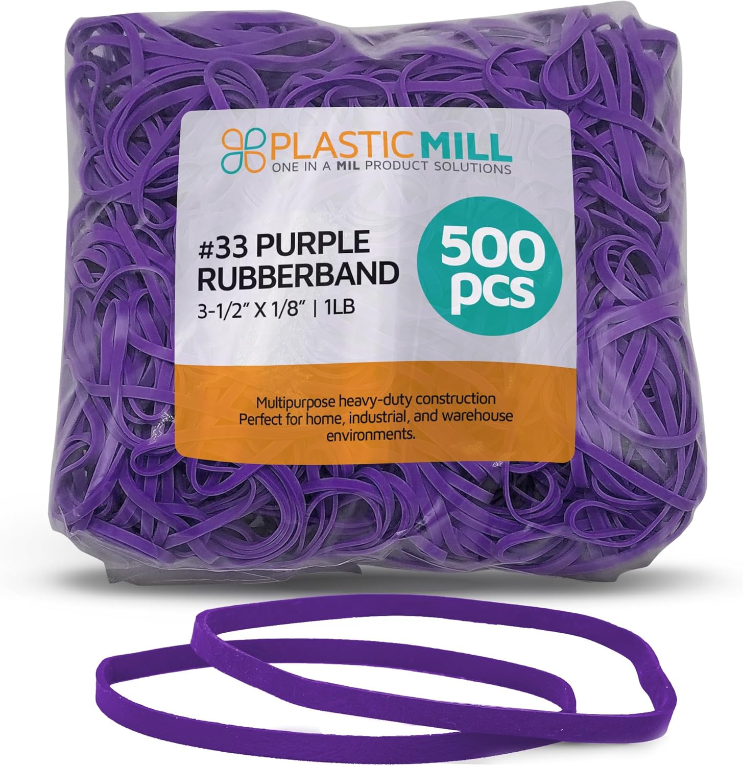PlasticMill Purple Rubber Bands Size 33 (3 1/2" x 1/8") - #33 Colored Rubber Bands Office Supplies - Strong, Elastic Bands for Crafts, Balloon Garland, Cash, File Folders (500-Pack)