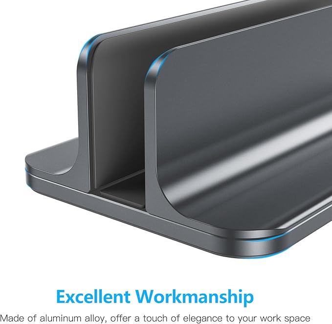 OMOTON Vertical Laptop Stand Holder, Desktop Aluminum Stand for MacBook with Adjustable Dock Size, Fits All MacBook, Surface, Chromebook and Gaming Laptops (Up to 17.3 inches), Gray