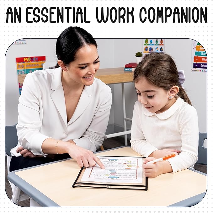 - Classroom Hero - Our clear dry erase pockets are ideal for holding worksheets, allowing students to write and wipe away answers, promoting active participation and reusability.
