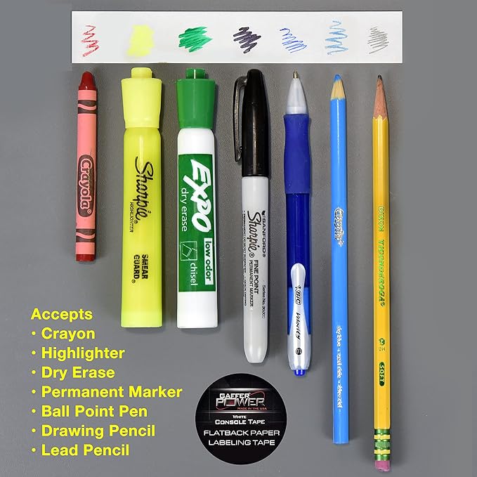 - STRONG ADHESION, CLEAN REMOVAL – This high-quality writable tape sticks securely to paper, plastic, wood, metal, and fabric yet removes easily without sticky residue. Ideal for temporary labels, cable management, and event setups, making it a versatile alternative to masking or duct tape.